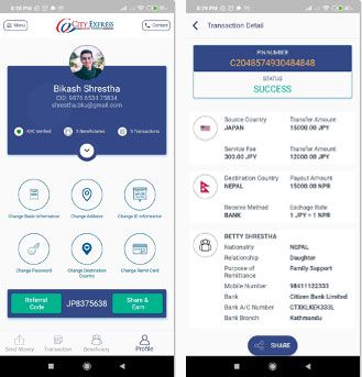 Profile management, beneficiary management and remittance funding -